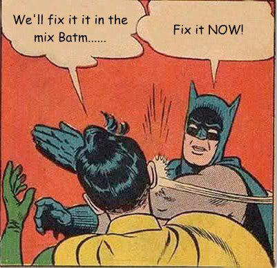 Extrapolating this logic, even spending some time thinking about the arrangement and if the instruments are arranged in a way to really fit together well makes a lot of sense here. The fewer problems you leave yourself to address in the mix, the better your mix will be. A common metaphor (which come to think of it I probably picked up from Slipperman as well) is to think of a song like a phone booth, and try to picture how you’re going to fit all the various and disparate pieces into a given space. Some times that means re-evaluating production decisions; that huge lush piano probably won’t work with that huge lush acoustic guitar, so figuring out which one of them is the “important” part driving the song before you even hit record is going to save you a lot of grief in the mix.