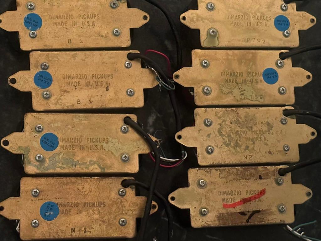 Anyway, for a long time now I’ve wondered if maybe the New 7s were actually the pickups originally wound for the CST. It’s hard to imagine Ibanez special-ordering 18 custom pickups for a small run and doing nothing else with them, it would make sense that maybe something that was wound to sound its best in mahogany might not be a great fit in basswood, which would explain why they were less well liked (the consensus amongst people who’d played a CST was they sounded pretty good – this was twenty years ago so my memories are hazy but I remember the bridge in particular being bright with a lot of cut to it), and, crucially, a few folks who’d spoken with Dimarzio about these pickups reported back that they were ALSO based on a Super 2 and Super Distortion (at the time I don’t think it was well known what the New 7s were base on, possibly because no one really cared and they were frequently ripped out and replaced with an Air Norton 7 and Tone Zone 7 – I did, as well). The New 7s had base plates without a typical Dimarzio part number, but were stamped “N2” and “B2,” by way of identification. I never took mine out of the guitar (I was too afraid of hurting it), but I was VERY curious what the underside of the CST pickups said.