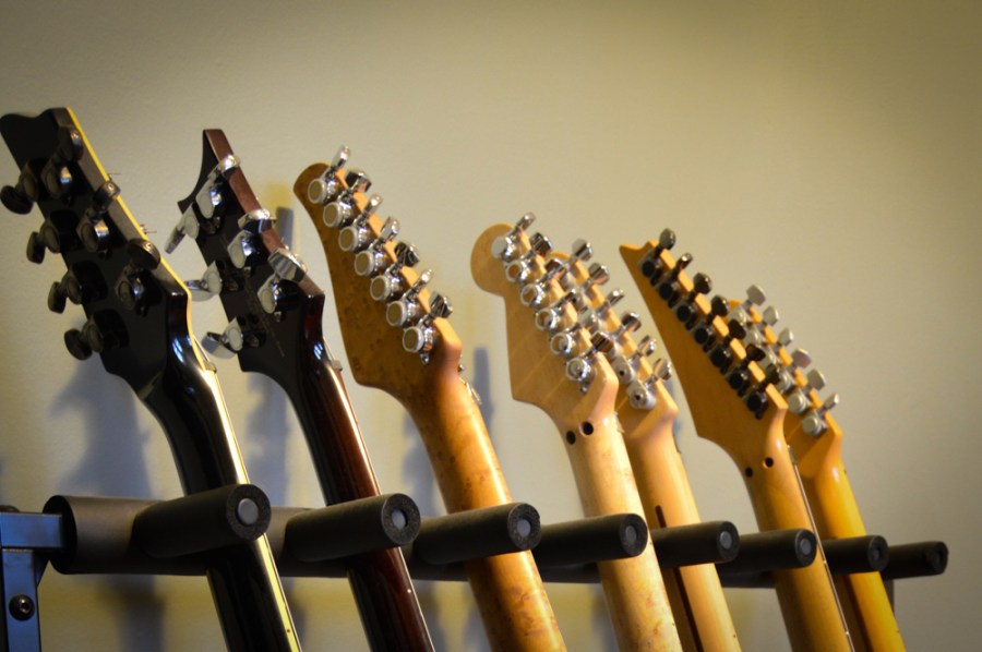 My first love… I’m pretty sure the only things stock about this guitar are the body and neck. Everything else – tuners, nut, bridge, electronics – has been changed out at one time or another. Currently, this has a pair of Suhr ML Standards and a Dimarzio AT1, but this is also my testbed for trying out singlecoils so that could change at any time.